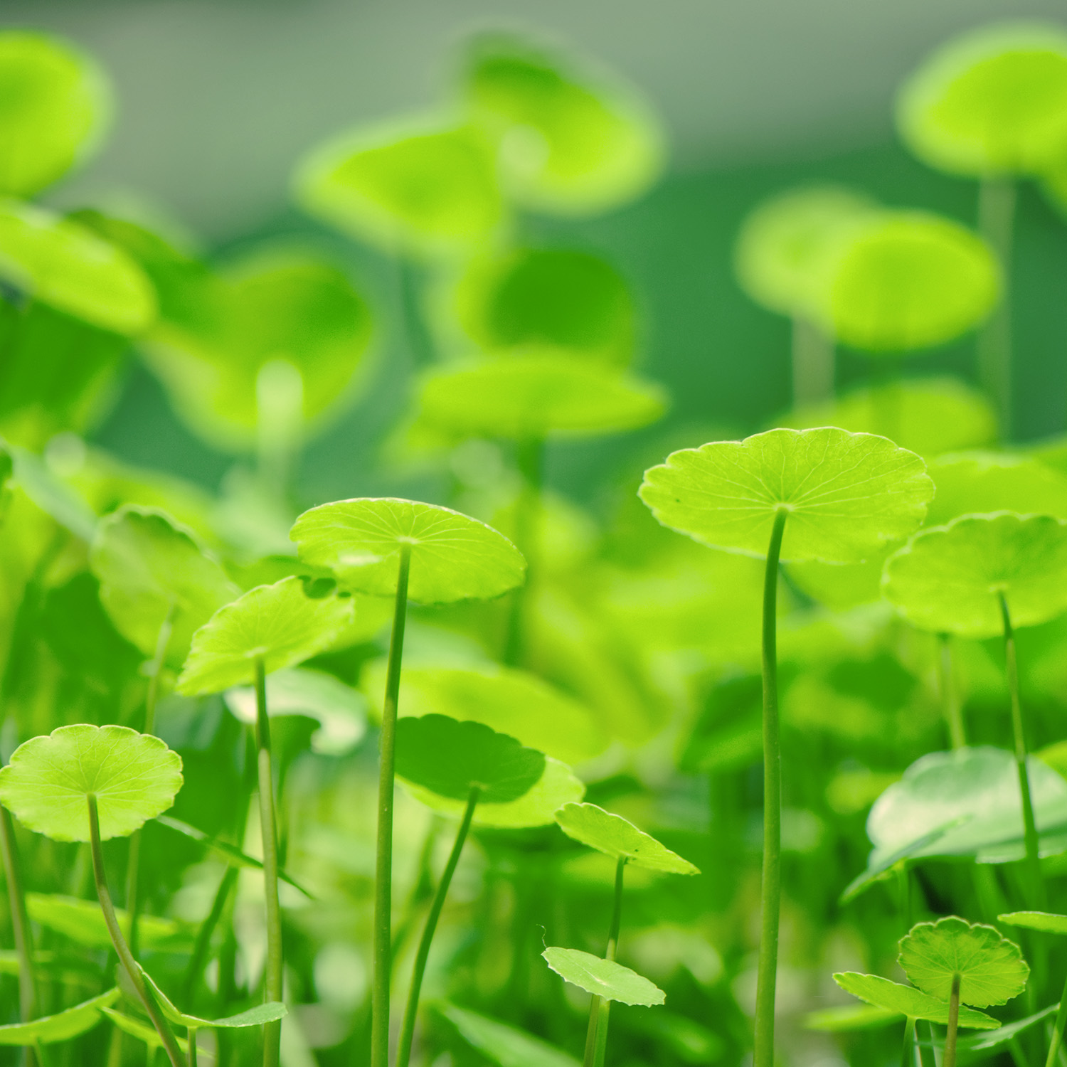 La centella asiática es una planta herbácea perenne que se encuentra de forma natural en varias regiones de Asia. Crece en zonas húmedas y pantanosas, y se caracteriza por sus hojas redondeadas y pequeñas flores de color rosa o violeta. Es ampliamente conocida y utilizada en la medicina ayurvédica y la medicina tradicional china desde hace más de 3.000 años. La centella es valorada por sus propiedades terapéuticas y se utiliza en diversas preparaciones medicinales y productos para el cuidado de la piel.