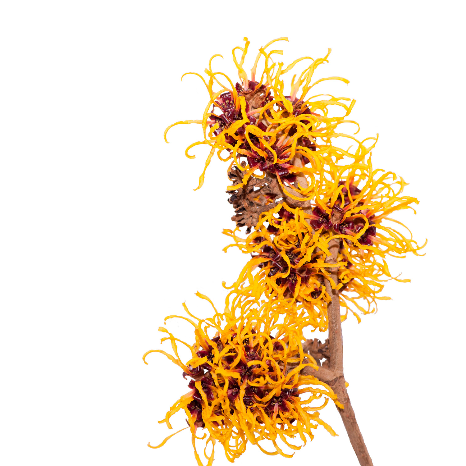 La hamamelis, también conocida como avellano de bruja es un arbusto originario de América del Norte y algunas partes de Asia. La característica más distintiva de la hamamelis son sus flores, que aparecen en racimos en forma de corona a finales de otoño y son de color amarillo brillante a naranja o rojo intenso. En la cosmética, se utiliza debido a sus propiedades astringentes que controlan el exceso de grasa en la piel, como calmante y antiinflamatorio que permiten aliviar el enrojecimiento.
