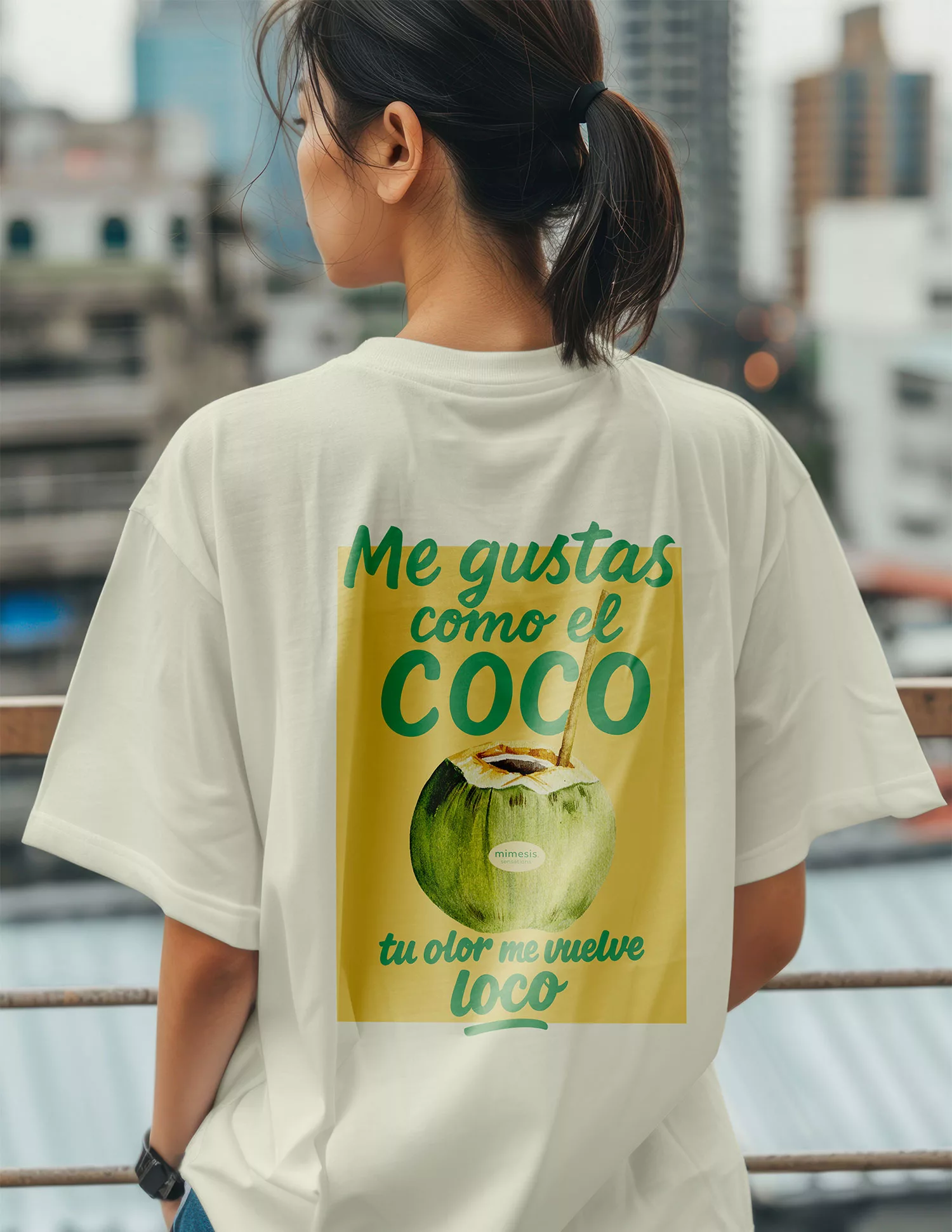 Esta camiseta oversize está confeccionada en algodón 100 % orgánico, con acabado suave y duradero. Destaca un pequeño eslogan frontal “Be Pure, Be Real” que contrasta con la ilustración trasera: “Me gustas como el coco, tu olor me vuelve loco”, un diseño pensado para quienes disfrutan de la frescura, la naturalidad y un toque de humor en su estilo. Una prenda versátil y sostenible, perfecta tanto para verano como para entretiempo.